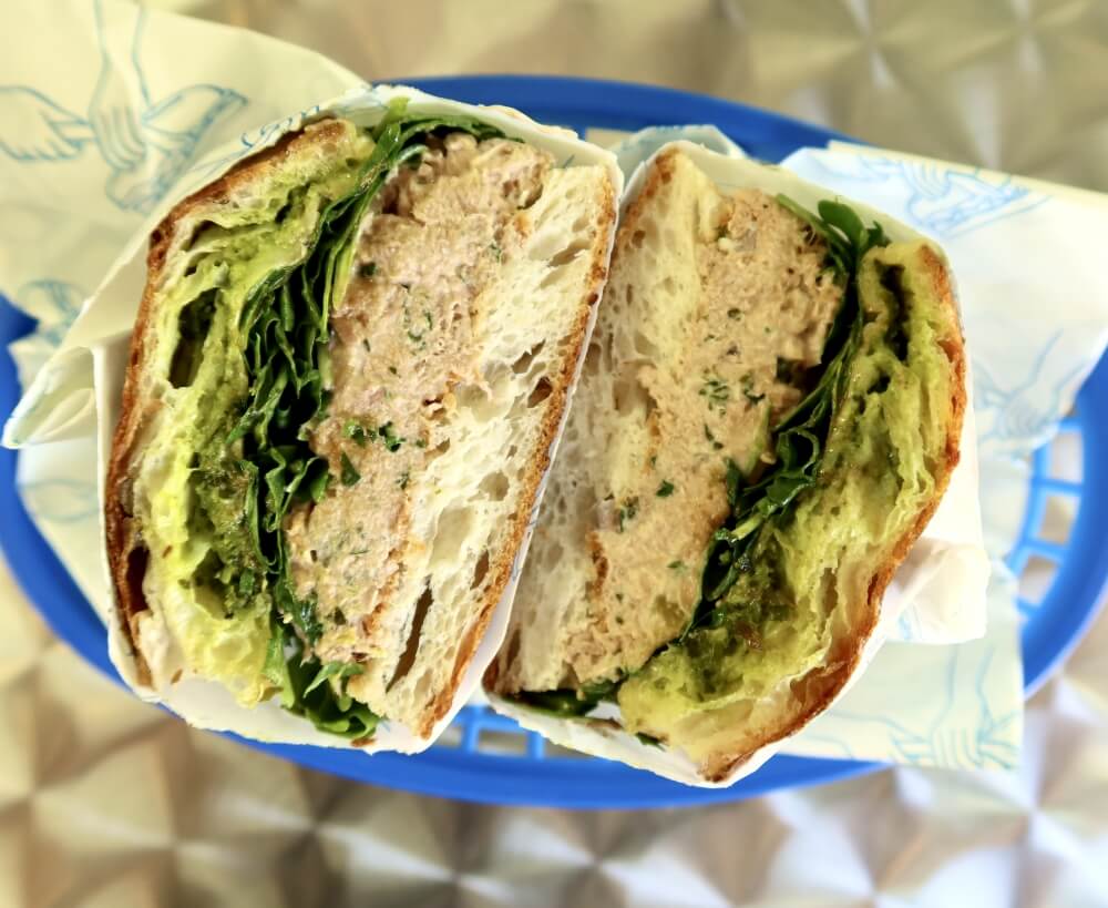 Tuna mix, melted cheddar, salsa verde, balsamic dressed rocket