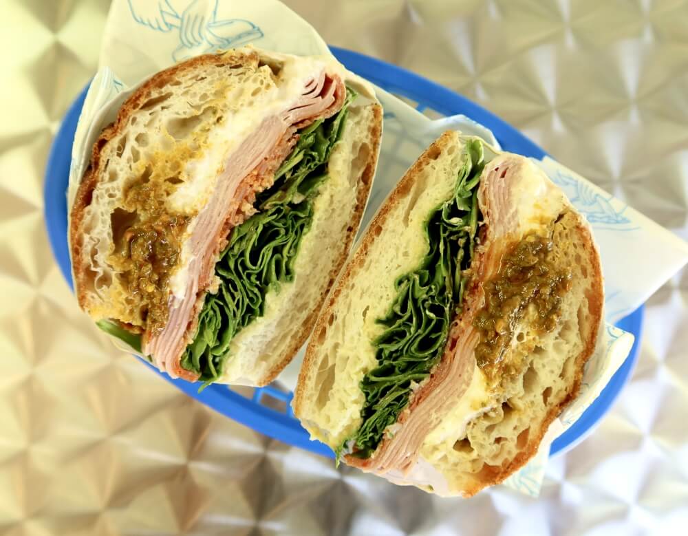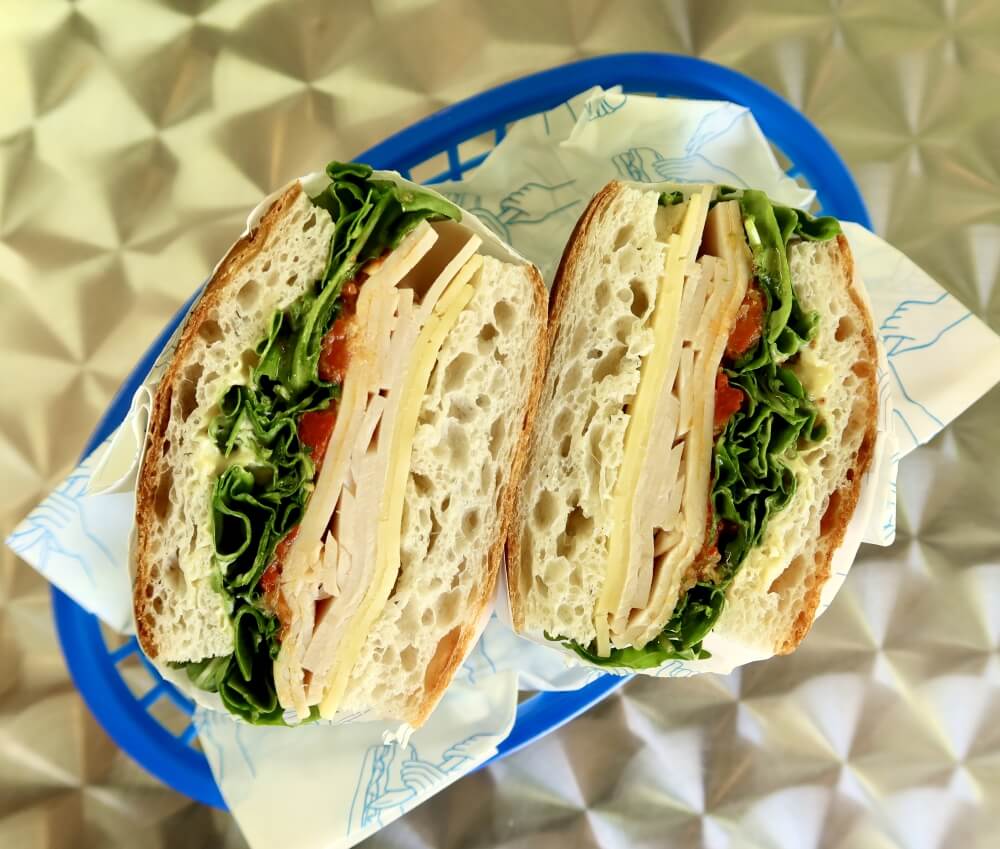 Sliced turkey, cheddar, dijonaise, giardiniera, honey mustard dressed rocket