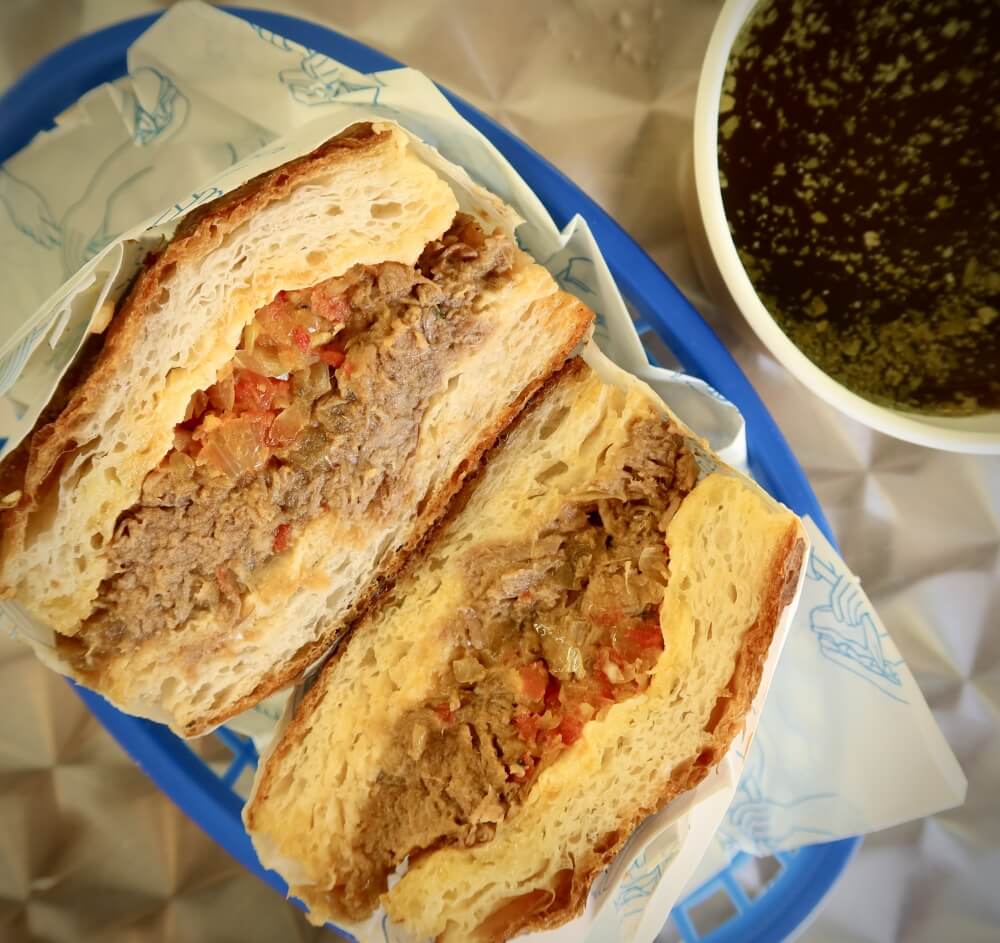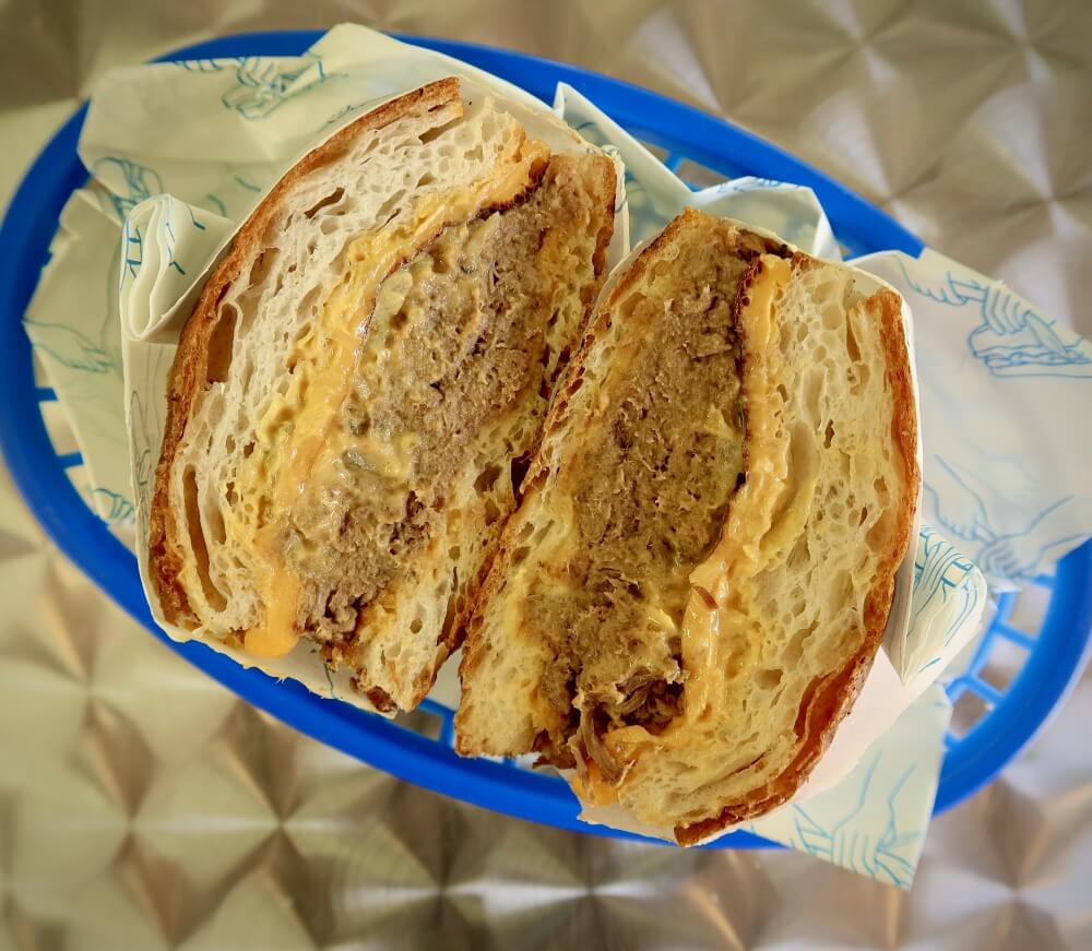 Pulled beef, dijonaise, caramelised onion, giardiniera, melted cheese with beef dipping broth